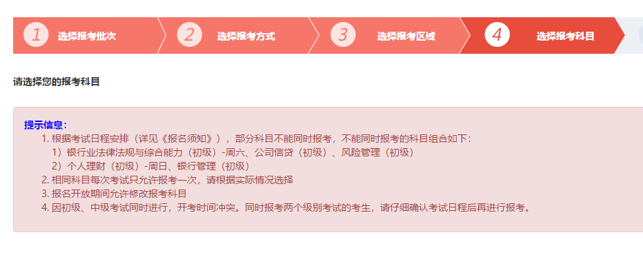 注意事项:考生可以一次报考多个科目,但注意避免考试时间冲突。